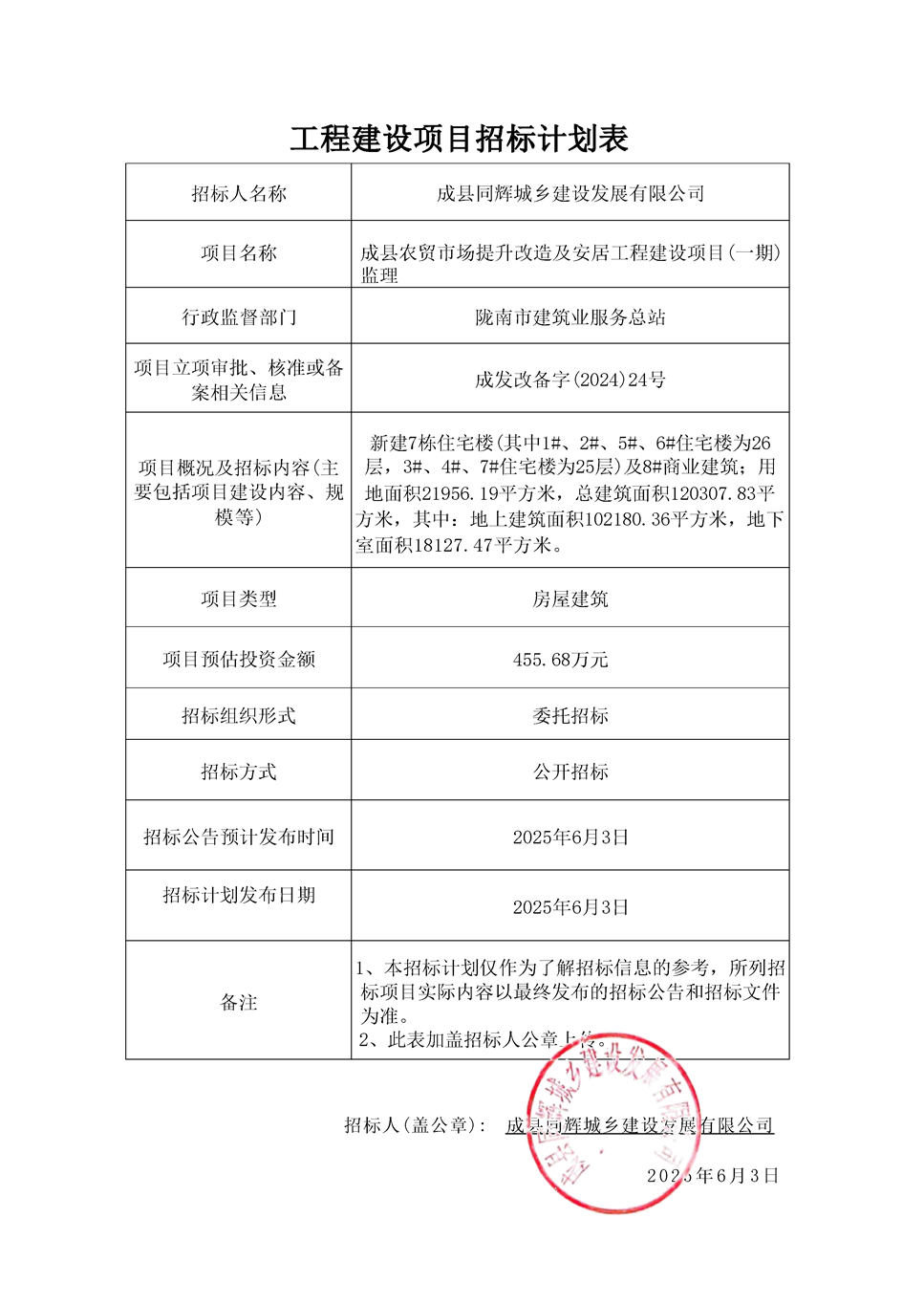 成縣農(nóng)貿(mào)市場提升改造及安居工程建設(shè)項目(一期)監(jiān)理