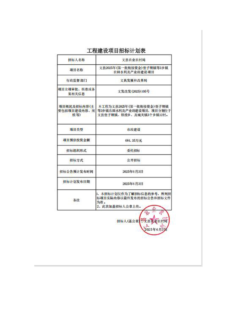 文縣2025年(第一批銜接資金)堡子壩鎮(zhèn)等3鄉(xiāng)鎮(zhèn)農(nóng)田水利及產(chǎn)業(yè)路建設項目