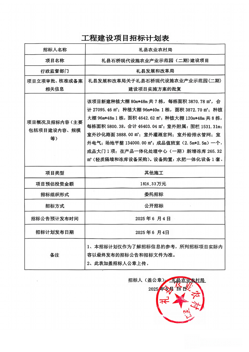禮縣石橋現(xiàn)代設(shè)施農(nóng)業(yè)產(chǎn)業(yè)示范園(二期)建設(shè)項(xiàng)目