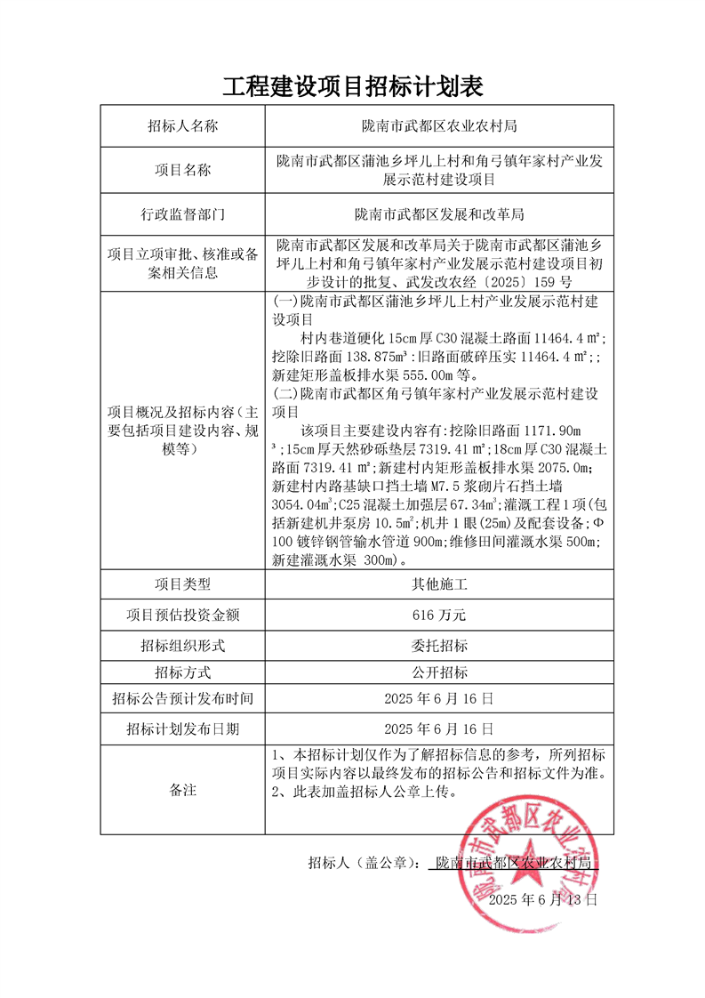 隴南市武都區(qū)蒲池鄉(xiāng)坪兒上村和角弓鎮(zhèn)年家村產(chǎn)業(yè)發(fā)展示范村建設(shè)項(xiàng)目
