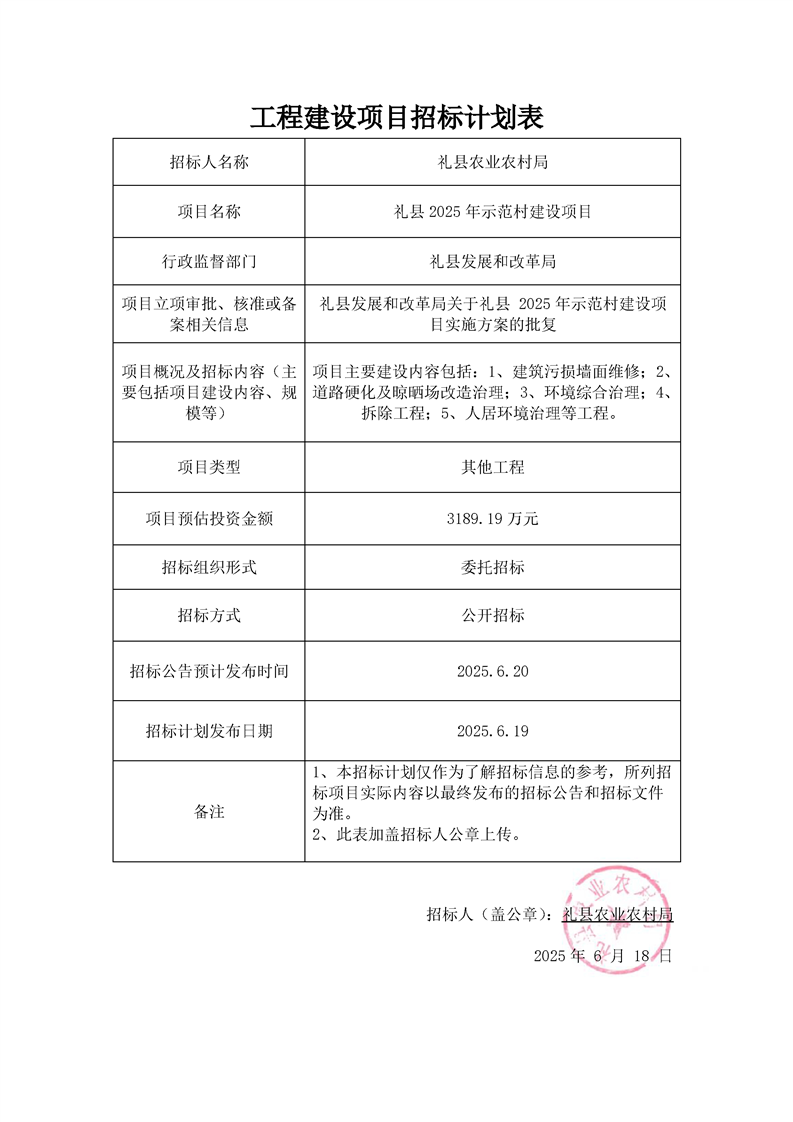 禮縣2025年示范村建設(shè)項目