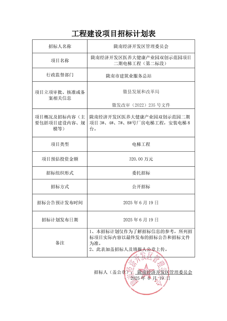 隴南經濟開發(fā)區(qū)醫(yī)養(yǎng)大健康產業(yè)園雙創(chuàng)示范園項目二期電梯工程(第二標段)