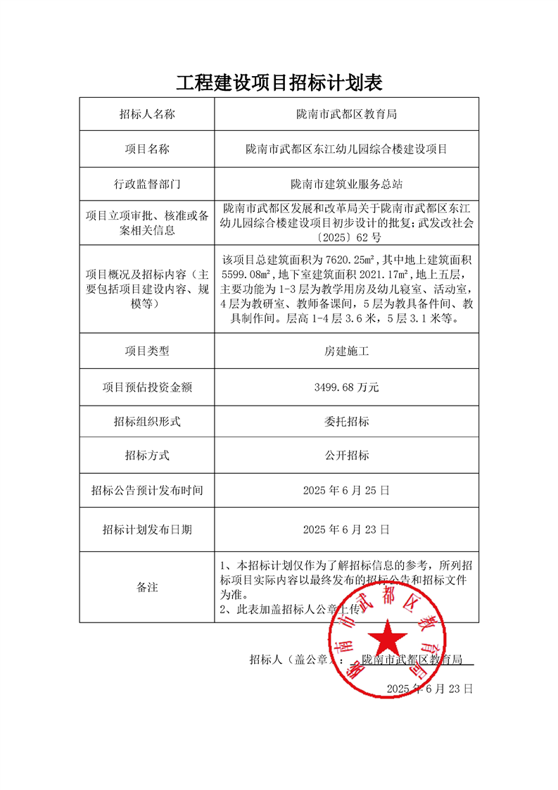 隴南市武都區(qū)東江幼兒園綜合樓建設(shè)項目—項目計劃表(1).pdf