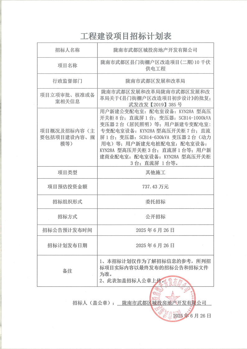 隴南市武都區(qū)縣門(mén)街棚戶區(qū)改造項(xiàng)目(二期)10千伏供電工程