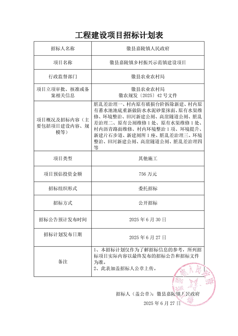 徽縣嘉陵鎮(zhèn)鄉(xiāng)村振興示范鎮(zhèn)建設(shè)項目