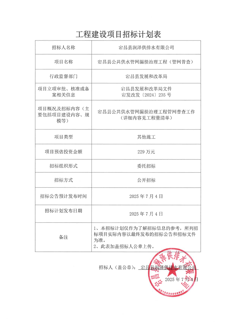 宕昌縣公共供水管網(wǎng)漏損治理工程(管網(wǎng)普查)