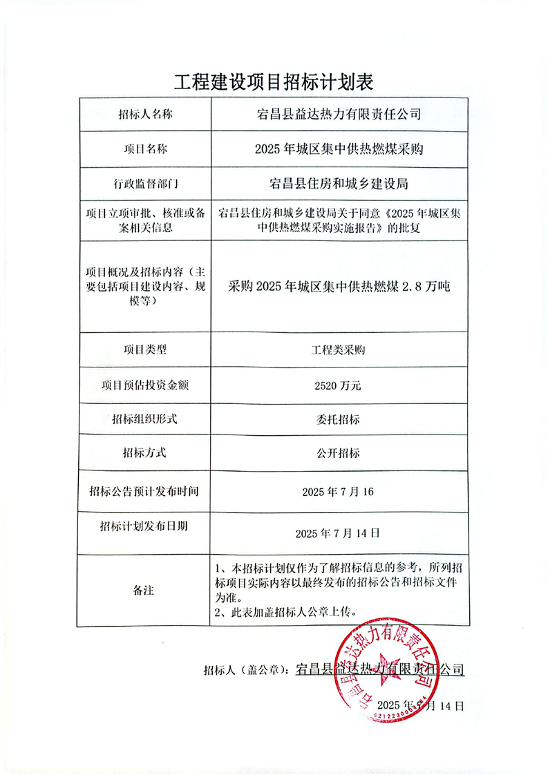 2025年城區(qū)集中供熱燃煤采購