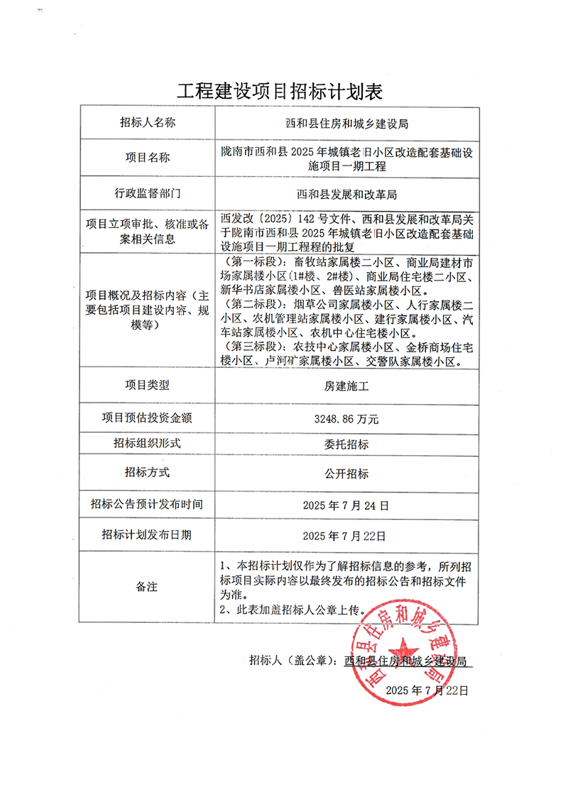 隴南市西和縣2025年城鎮(zhèn)老舊小區(qū)改造配套基礎(chǔ)設(shè)施項(xiàng)目一期工程