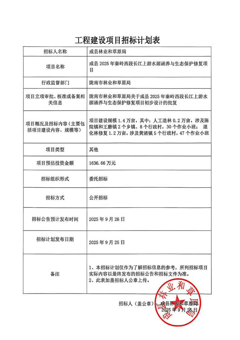 成縣2025年秦嶺西段長(zhǎng)江上游水源涵養(yǎng)與生態(tài)保護(hù)修復(fù)項(xiàng)目