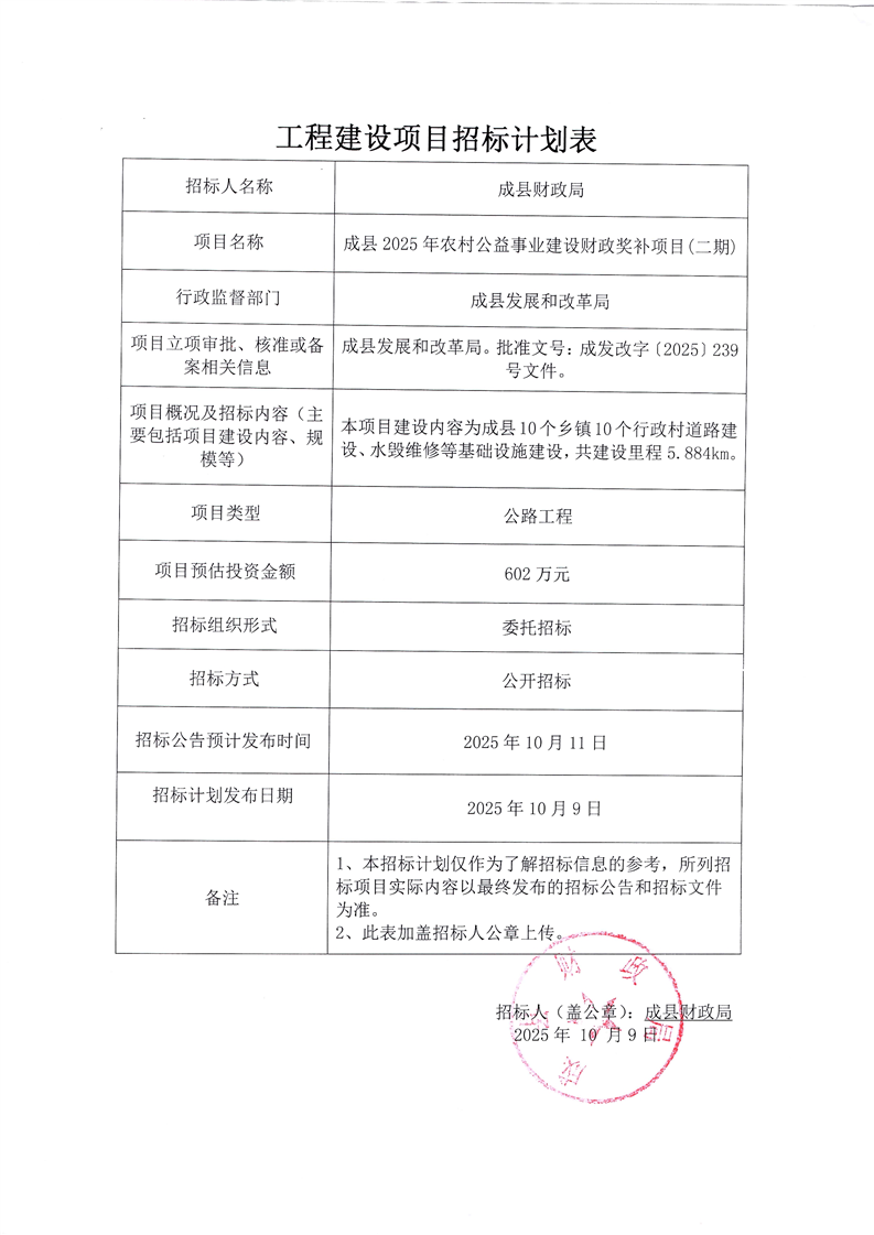 成縣2025年農村公益事業(yè)建設財政獎補項目(二期)