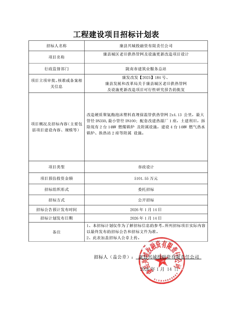康縣城區(qū)老舊供熱管網(wǎng)及設(shè)施更新改造項(xiàng)目設(shè)計(jì)