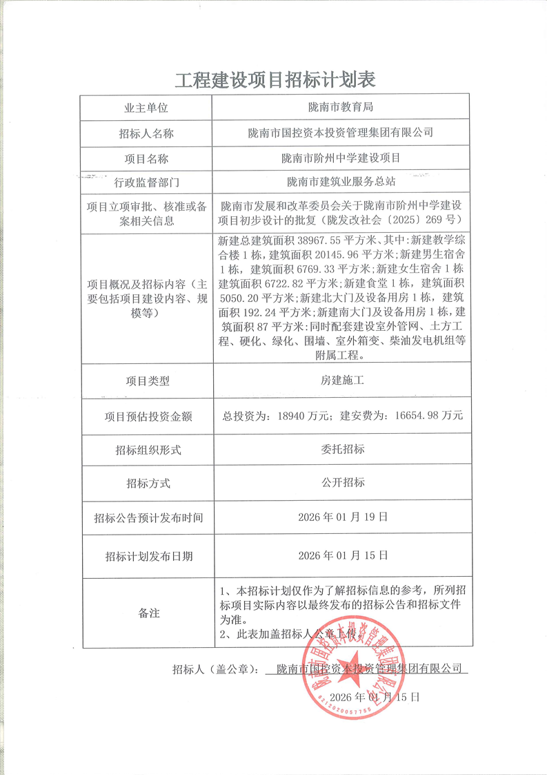 隴南市階州中學建設項目