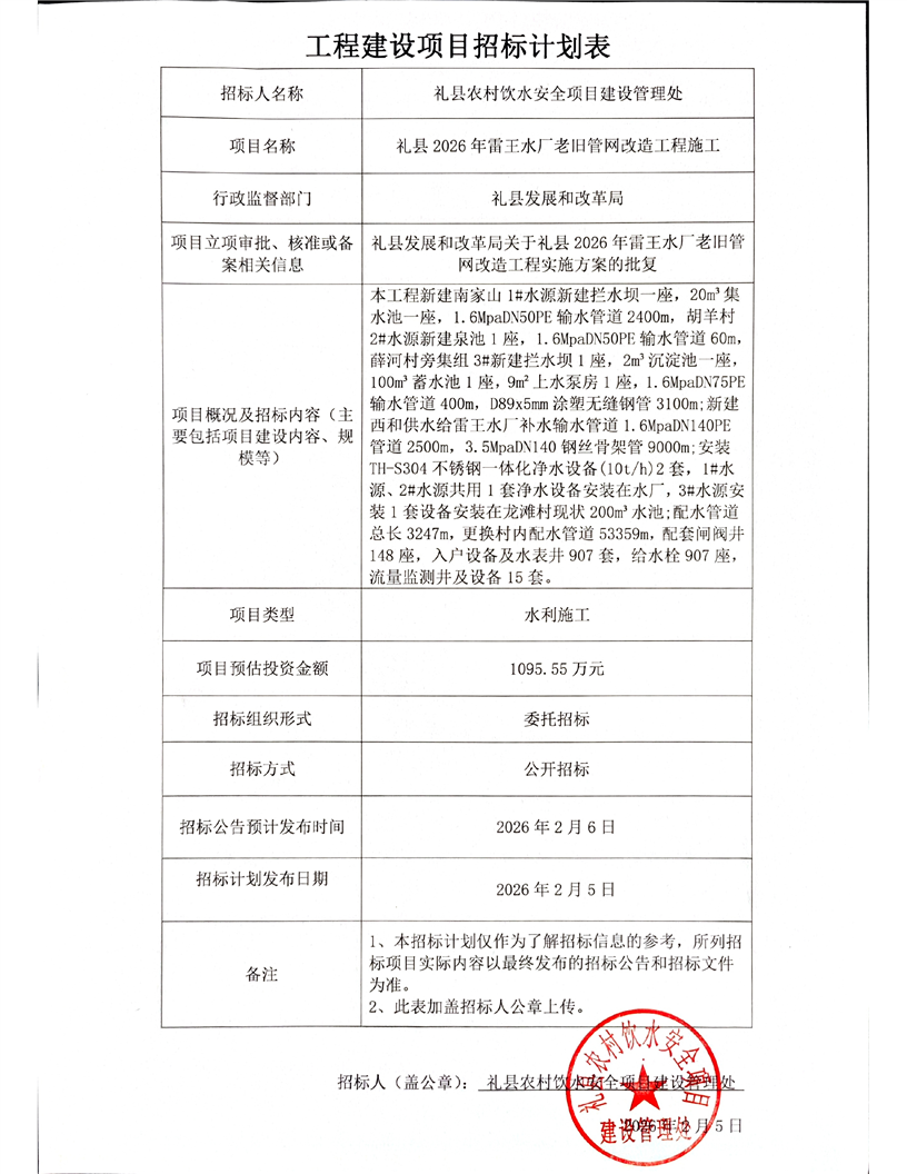 禮縣2026年雷王水廠老舊管網(wǎng)改造工程施工.pdf
