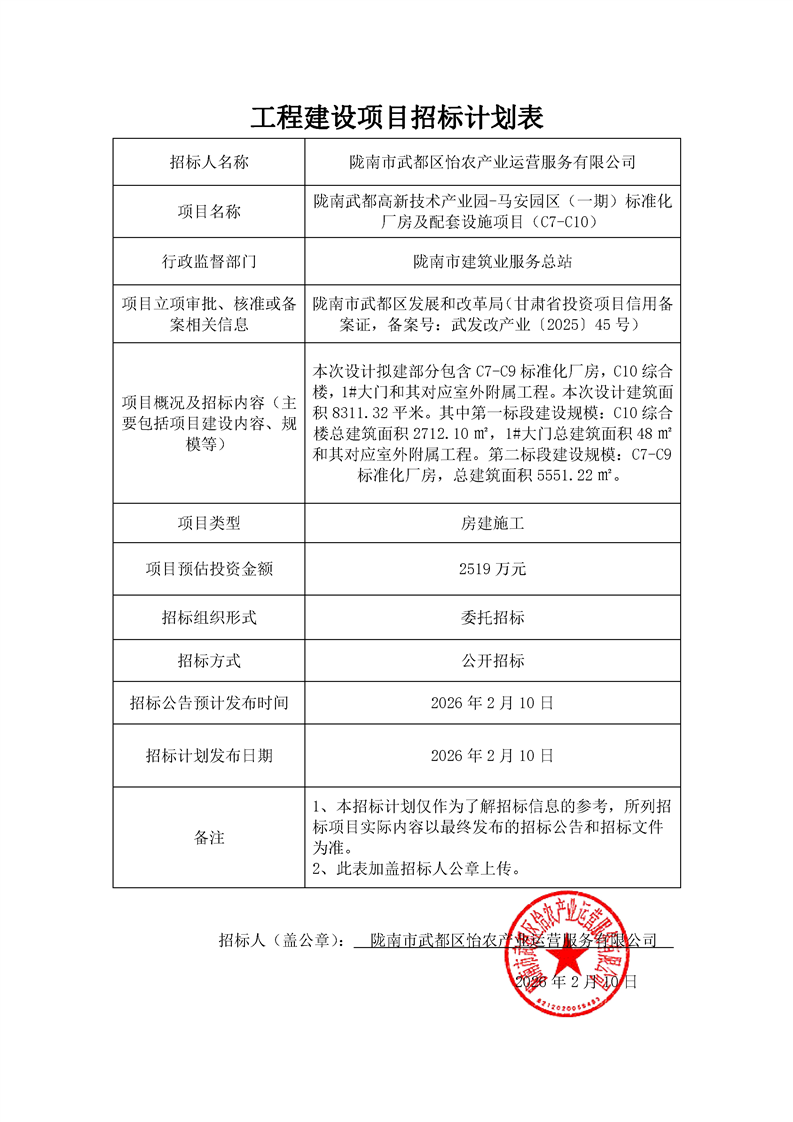 附件:施工招標計劃表—隴南武都高新技術(shù)產(chǎn)業(yè)園-馬安園區(qū)(一期)標準化廠房及配套設(shè)施項目(C7-C10).pdf