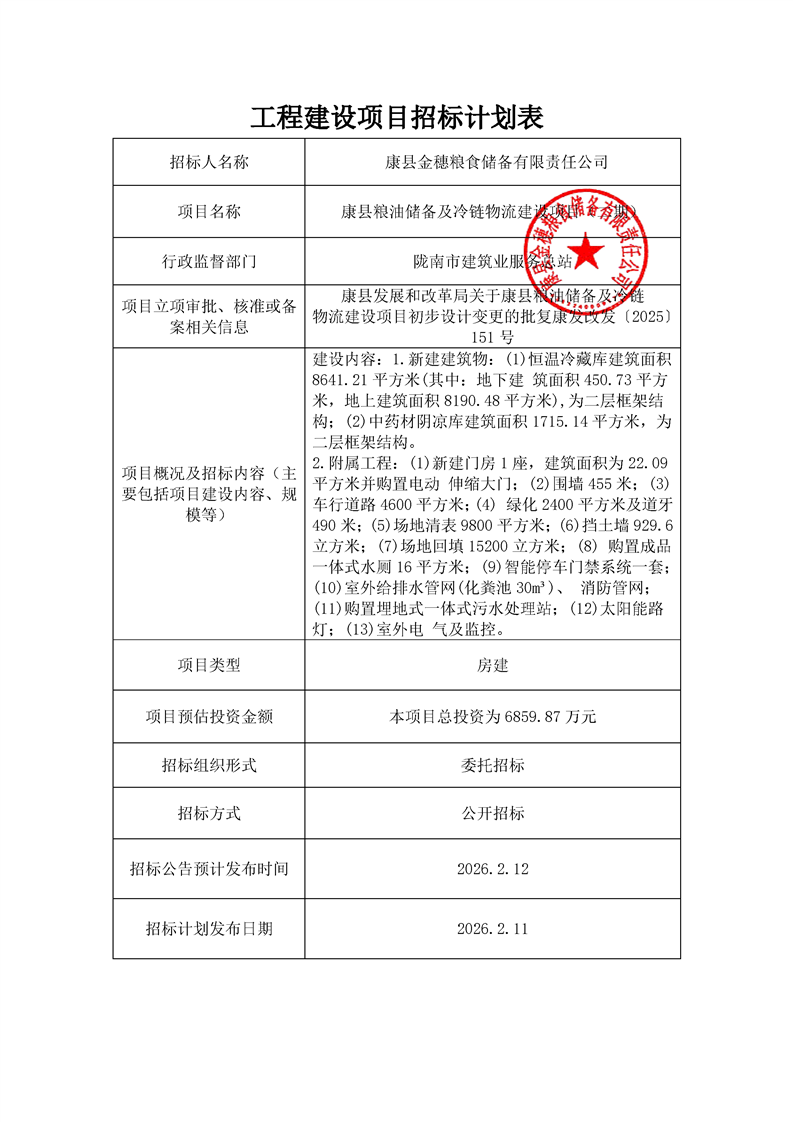 康縣糧油儲備及冷鏈物流建設(shè)項(xiàng)目(二期)