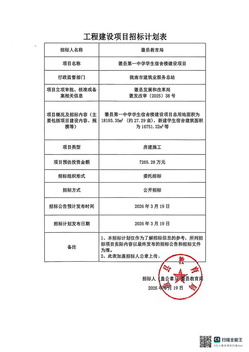 徽縣第一中學(xué)學(xué)生宿舍樓建設(shè)項(xiàng)目